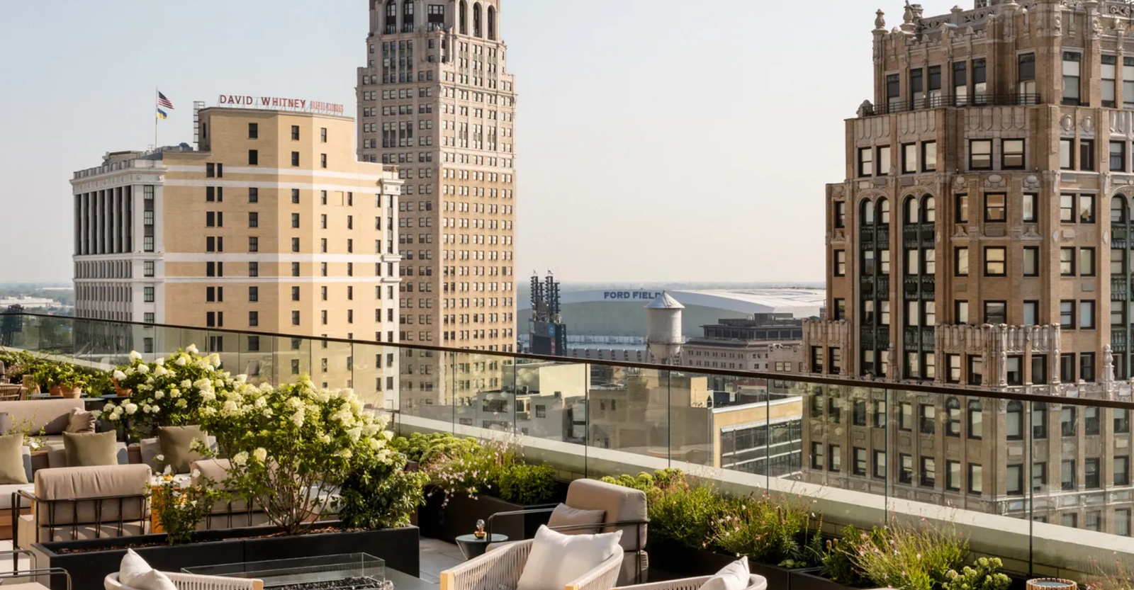 Perched on the 14th floor of Book Tower, Kamper’s Rooftop Lounge offers breathtaking city views, curated cocktails and Mediterranean-inspired small plates. The chic lounge features plush seating, fire pits and a retractable roof for year-round indulgence.