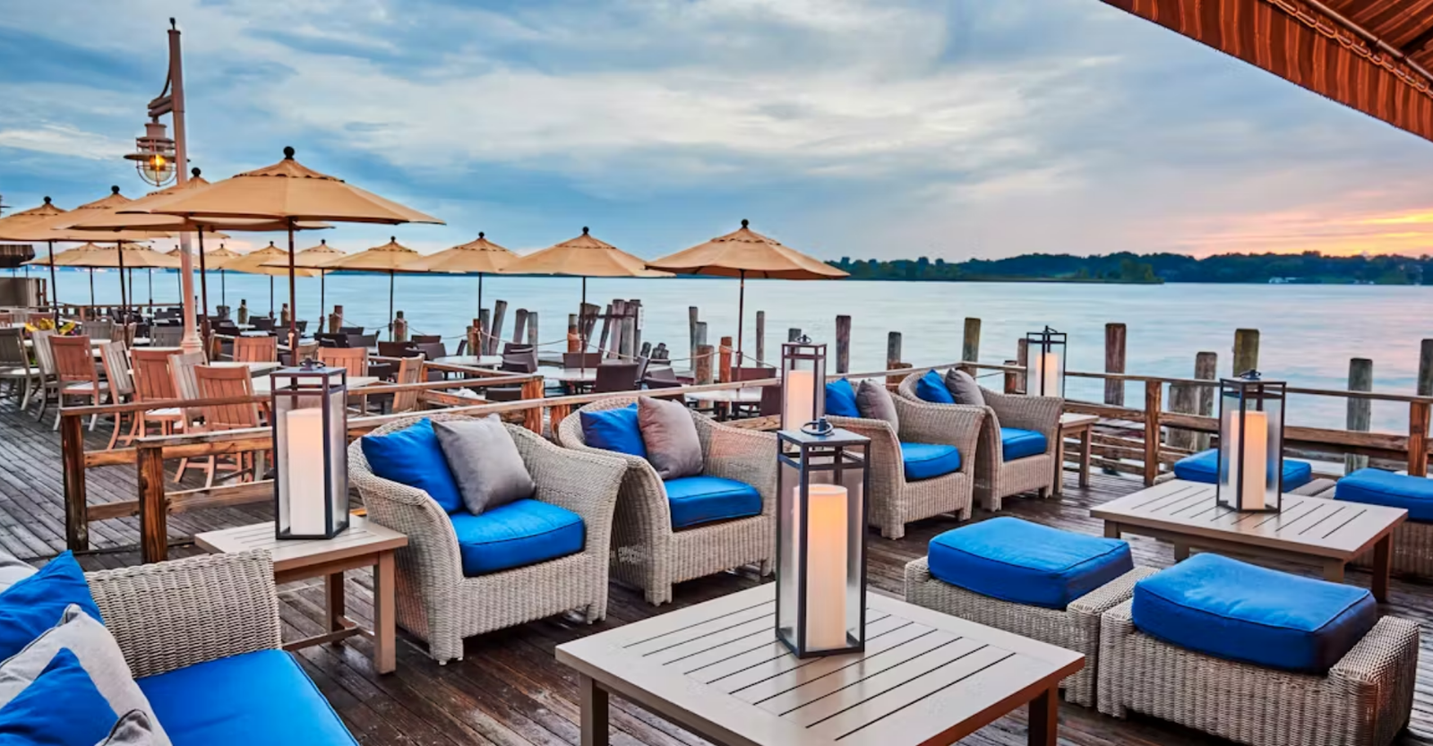 🌊 Deck dining with river views